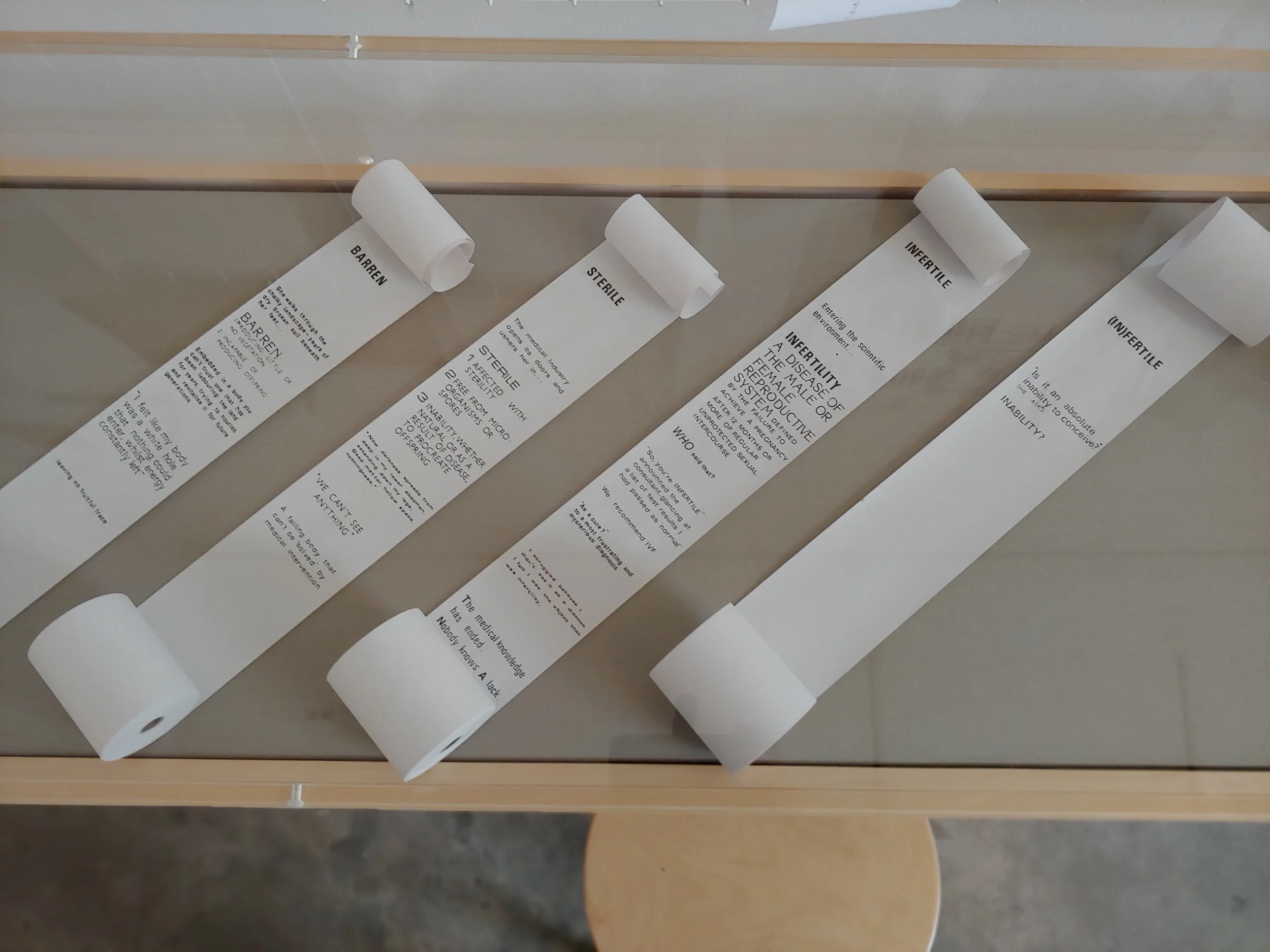 Artist-in-residence Sally Butcher approached the residency through the lens of her practice-based research about experiences of infertility, creating performative text pieces that explore alternative meanings around the reproductive body.